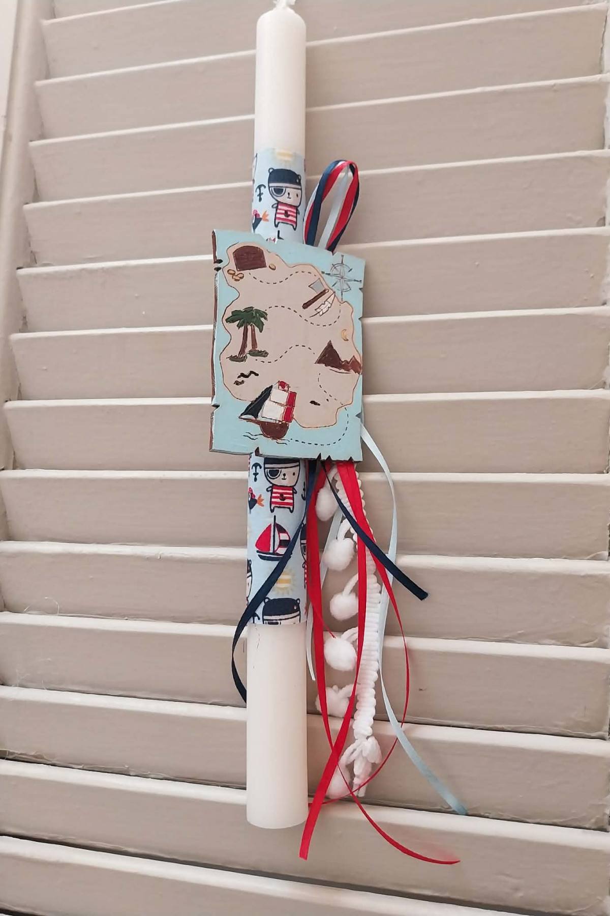 Λαμπάδα 30εκ. αρωματική με ξυλινο πειρατικό χάρτη