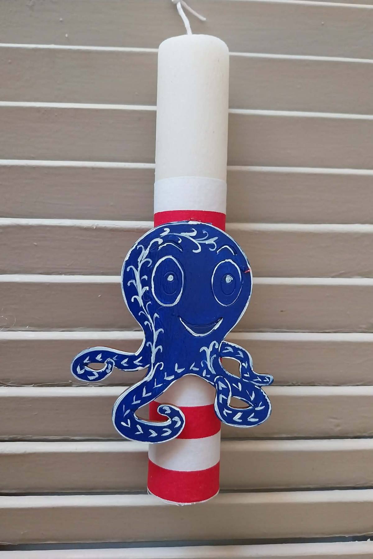 Κοντολάμπαδο αρωματικό διακοσμημένο με ξύλινο χταποδι ζωγραφισμενο στο χέρι