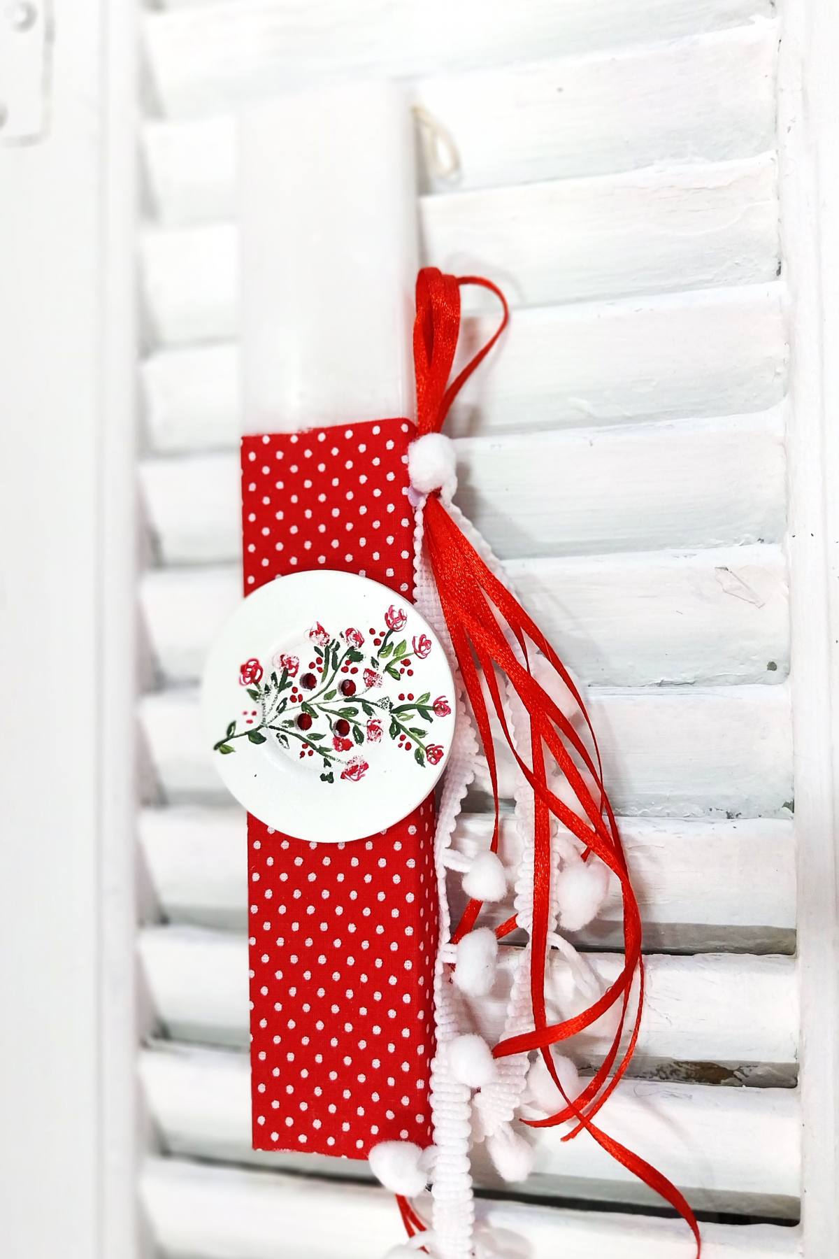 Κοντολάμπαάδο αρωματικό διακοσμημένο με ξύλινο κουμπί ζωγραφισμένο στο χέρι και στολισμένο με κορδέλες