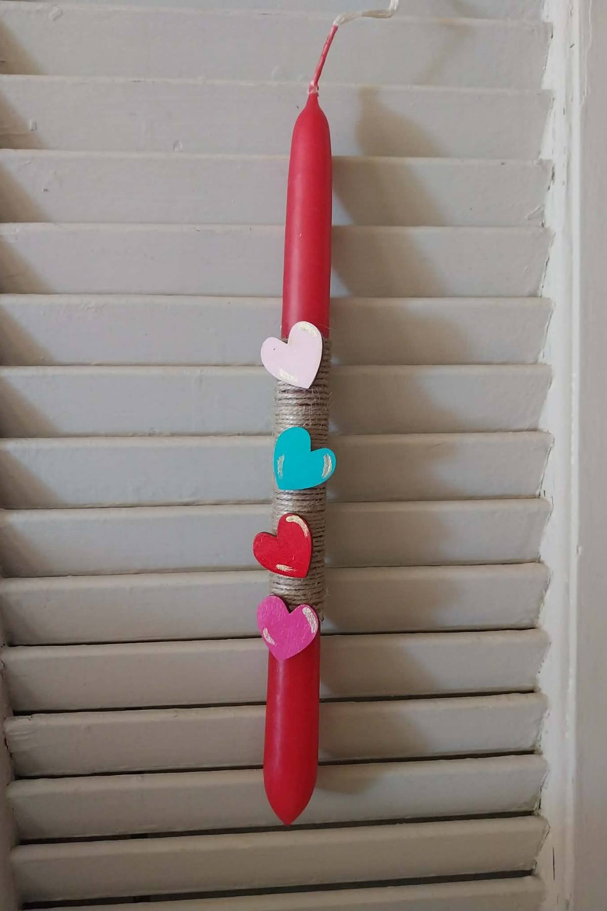 Λαμπάδα 30εκ. αρωματική διακοσμημένη με ξύλινες καρδιές