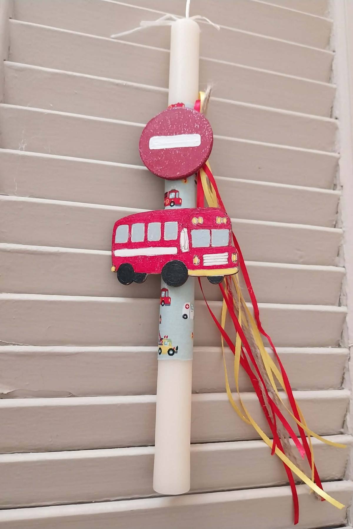 λαμπάδα αρωματική 30εκ. διακοσμημενη με ξύλινα στοιχεία