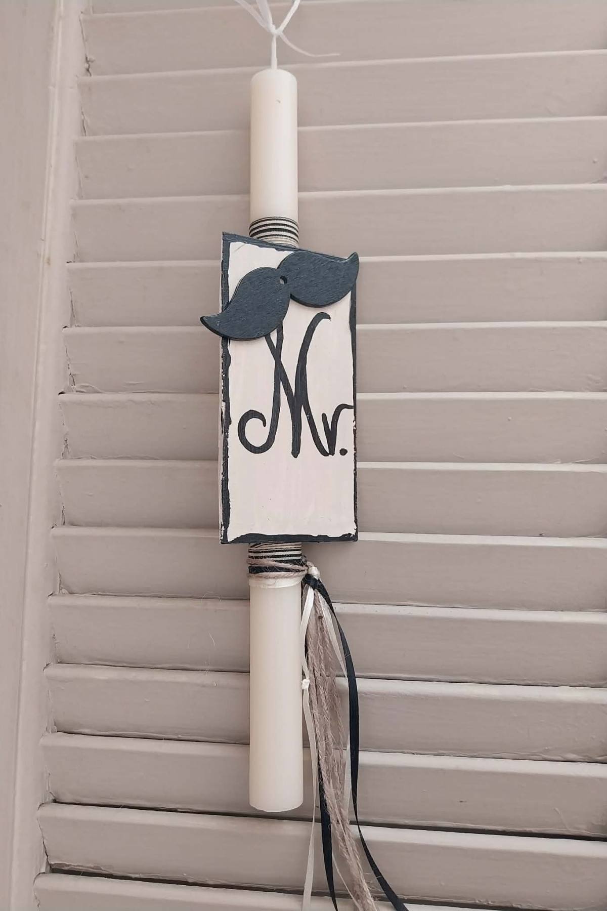 Λαμπάδα 30εκ. αρωματική διακοσμημένη με ξύλινο ταμπελάκι με μουστάκι