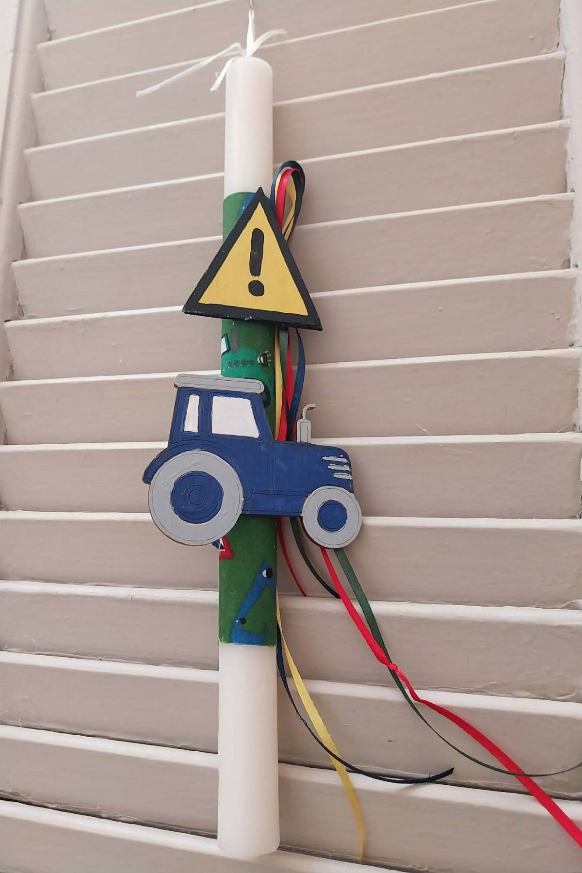 Λαμπάδα 30εκ. με ξύλινο τρακτέρ και σήμα