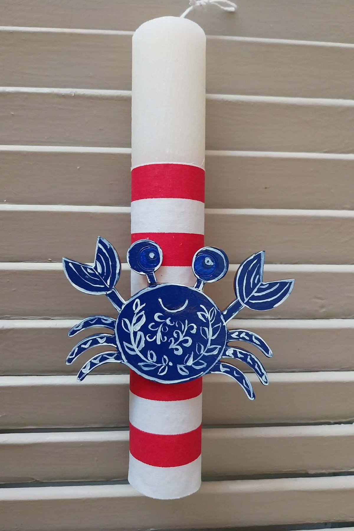 κοντολάμπαδο αρωματικό διακοσμημένο με ξύλινο καβούρι ζωγραφική