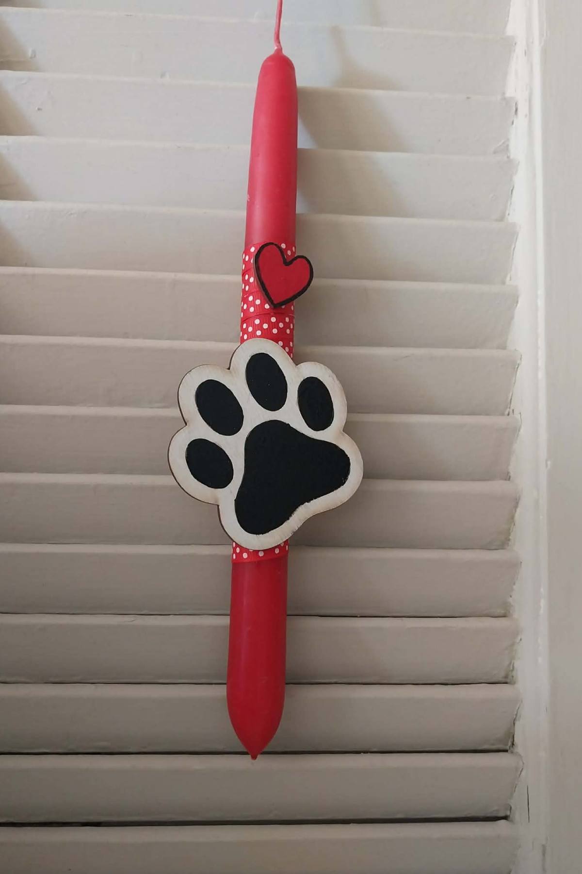 λαμπάδα 30εκ. αρωματική διακοσμημένη με ξύλινη πατούσα και καρδούλα